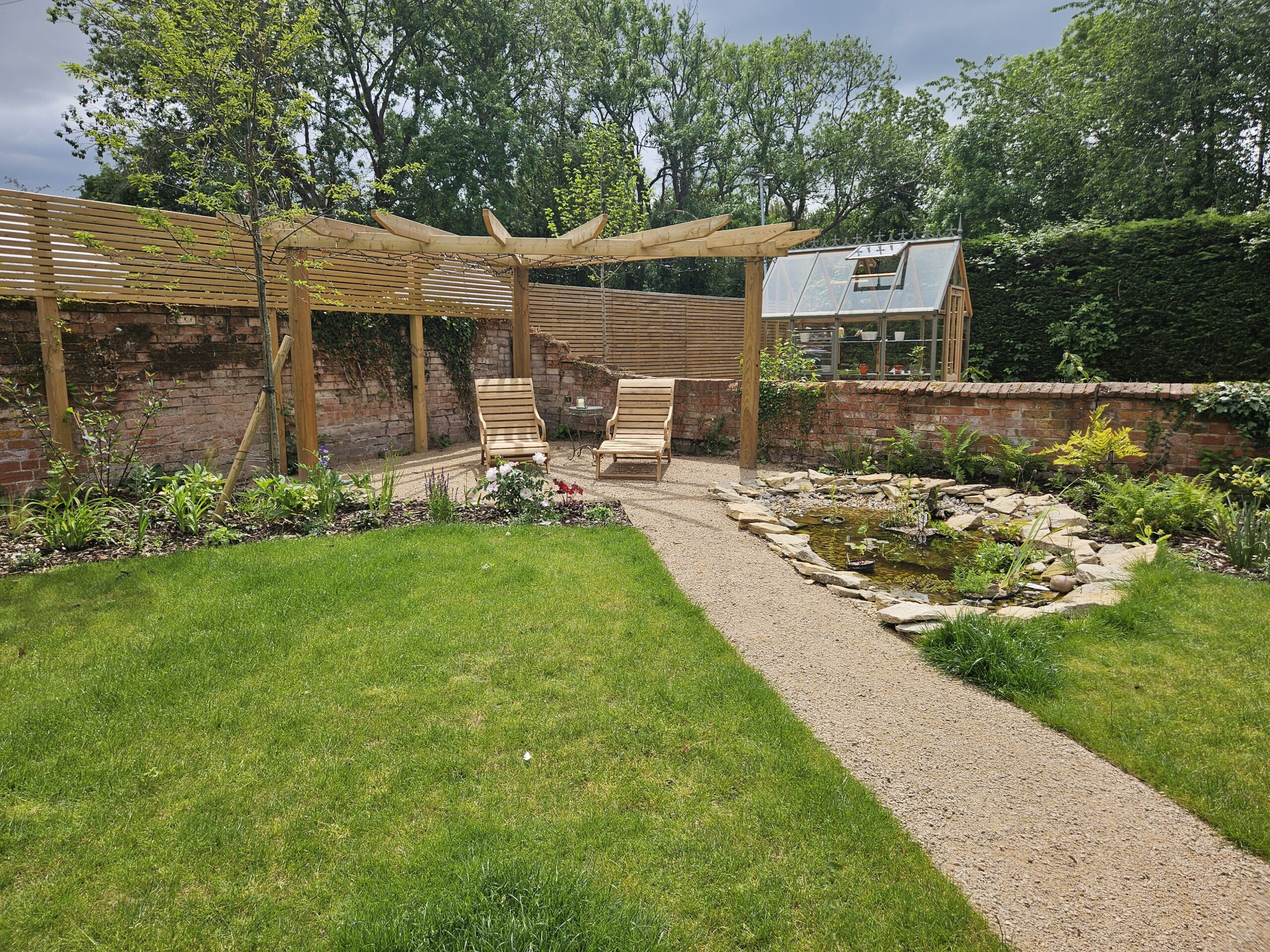 Protecting the existing apple trees and designing a garden that respected the historic house and surroundings was the heart of this Worcestershire project. The design used curves and simple, sustainable materials. A pond, a vegetable garden, and wildlife-friendly planting brought the design to life.